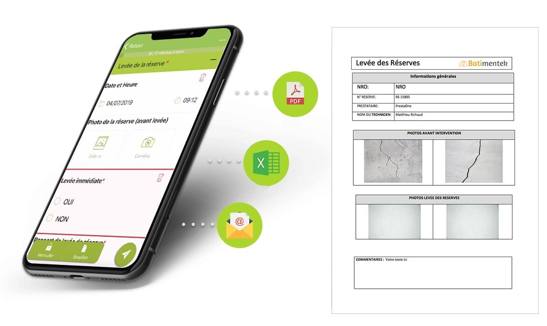 Kizeo Forms, disponible sur smartphone, vous permet de vous acquitter en temps réel de ces procès-verbaux. La gestion des levées de réserves d’un chantier n’aura jamais été aussi intuitive et efficace !