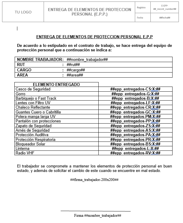 Así se pueden ver las plantillas de los reportes de Kizeo Forms. Cuando el trabajador en terreno llena el formulario, este reporte se llena automáticamente con los datos ingresados y es enviado al departamento SSOMA.